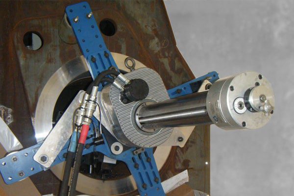 Most suitable for turbine coupling applications. Easy to set up, designed to make quick work of tough jobs in spaces too restrictive for most boring machines. Extremely rigid system provides exceptional precision for accurate fitting of coupling bolts.
